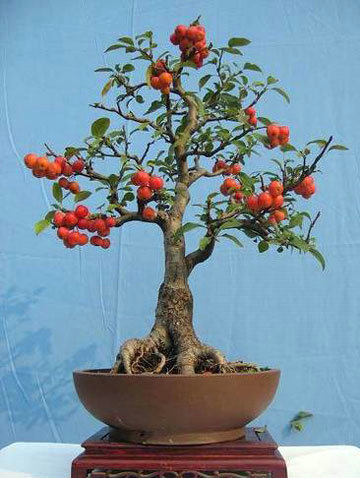 (2) 澆水 山楂較耐旱,未結果的樹對水分要求不嚴格,但是結果的盆景則必須保證水分的充足供應。盆內(nèi)以保證濕潤為度,不宜積水,秋季要控制澆水量,而冬季則寧干勿濕。