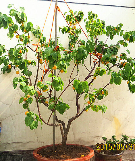 盆栽杏樹體矮化,移動方便,利于集中休眠、分散管理,且杏果色彩艷麗,果形美觀,氣味芬芳,營養(yǎng)豐富,十分適合在宅院、樓房陽臺等處種植。